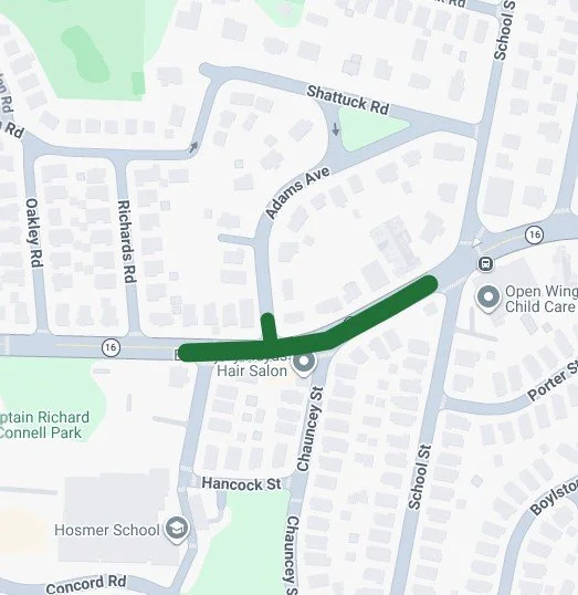 Travelers heading toward Watertown Square on Mount Auburn Street will be detoured via Winsor Avenue instead of utilizing School Street. Access to the latter portion of School Street will still be available via Adams Avenue if needed.